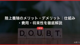 関連記事: 陸上養殖のメリット・デメリット|仕組み・費用・将来性を徹底解説