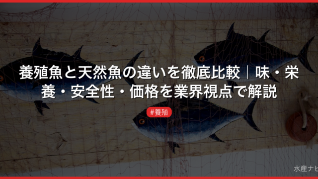 養殖 養殖魚と天然魚の違いを徹底比較|味・栄養・安全性・価格を業界視点で解説 養殖魚と天然魚の違いを味・栄養・安全性・価格・持続可能性の5軸で徹底比較。魚種別の比較表や業界関係者の本音、流通の裏側まで現場視点で解説します。 2026.03.16 養殖