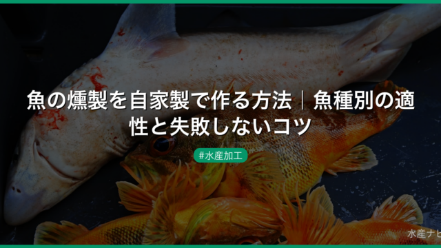 水産加工 魚の燻製を自家製で作る方法|魚種別の適性と失敗しないコツ 魚の燻製を自家製で作る方法を完全解説。温燻・冷燻・熱燻の違い、魚種別の適性比較、下処理から燻製の手順、プロ直伝の失敗しないコツまで初心者にもわかりやすく紹介します。 2026.03.17 水産加工
